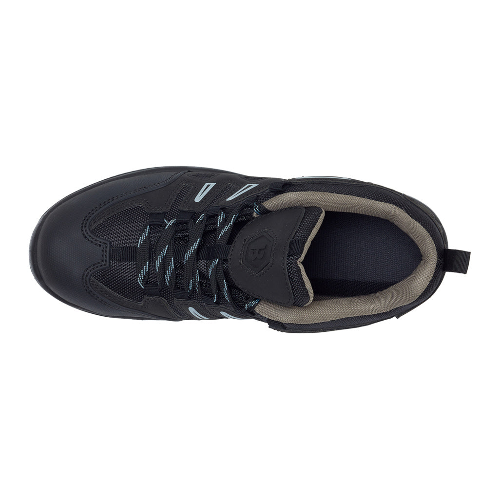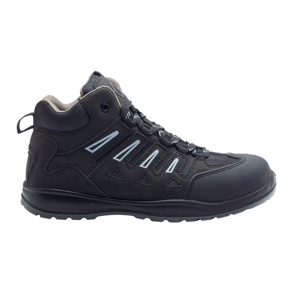 The Clayton Hiker features a water-resistant mesh/TPU upper to keep feet dry, with both steel toe cap and midsole protection for added safety. The hardwearing dual-density PU sole is designed for all-day performance, offering shock absorption while being anti-slip, anti-static, and resistant to fuel oil.
