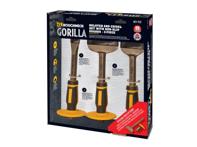 Roughneck Bolster & Chisel Set with Non-Slip Guards, 3 Piece